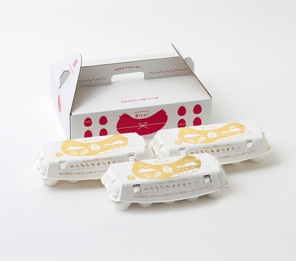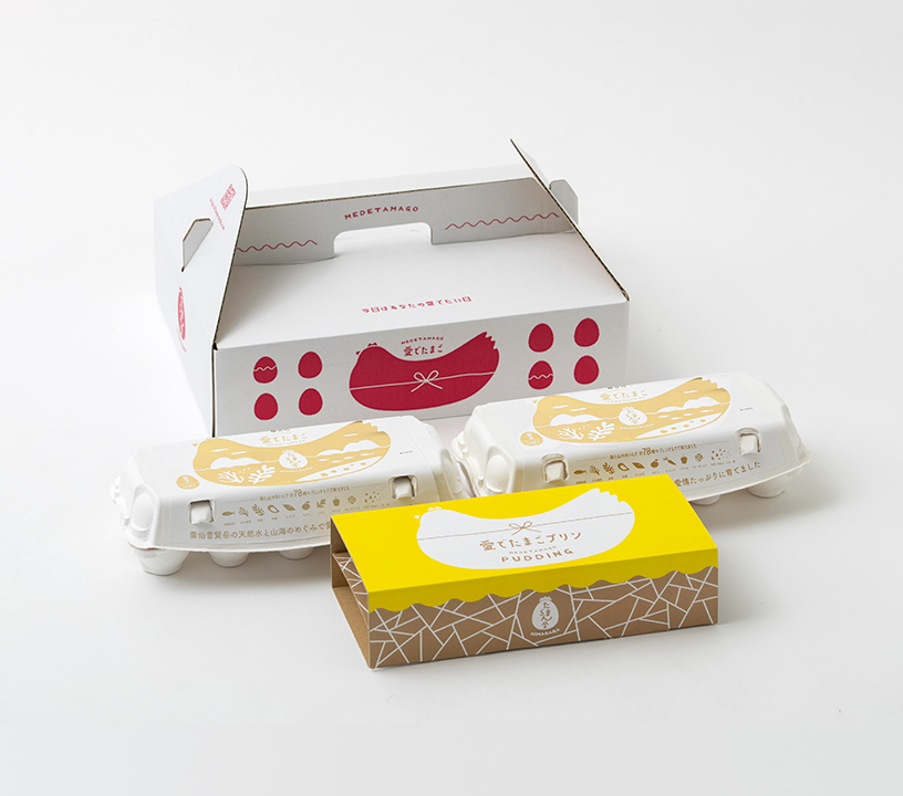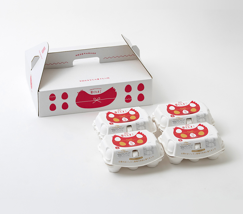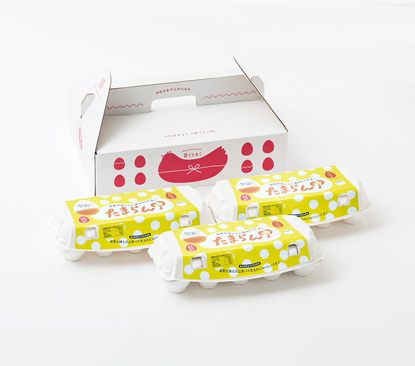 「幸せの愛でたまご」「紅白愛でたまご」「愛でたまごプリン」たまごからデザートまで楽しめるよくばりパック